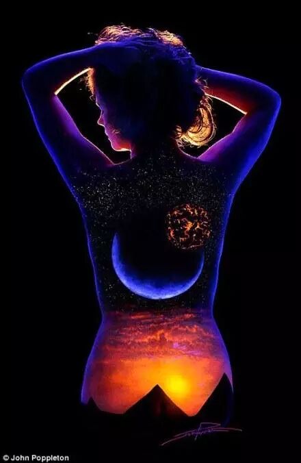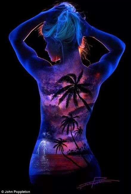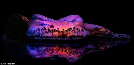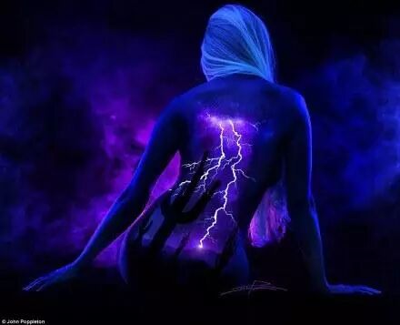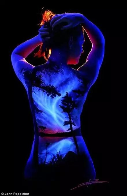 艺术家John Poppleton善于结合大自然和女人这两种最美丽的天然素材,他用萤光物料把大自然绘画在女性的皮肤上,同时把她的身体融入于自然题材之中.....你们都来被震撼一下!