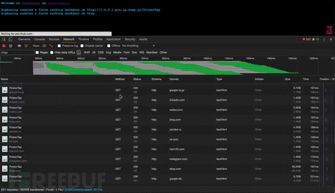 PoisonTap PoisonTap是一款制作成本仅为5美元的设备,它主要使用的是极客圈著名的Raspberry Pi Zero(树莓派)。只需要一根USB数据线和一张SD存储卡,我们就可以将其当作USB Armory和LAN Turtle这样的USB设备来使用了。 发布时间:2016年11月16日 源代码下载地址:https://github.com/samyk/poisontap 联系方式:@SamyKamkar // https://samy.pl 当PoisonTap(Raspberry Pi Zero + Node.js)插入一台受密码保护的计算机(锁定状态)之后,它将会进行以下操作: 1. 模拟一个USB接口的以太网设备(或Thunderbolt接口); 2. 劫持设备上的所有网络通信流量; 3. 利用Web浏览器嗅探并存储Alexa网站排名前十万的网站HTTP cookie和session(会话); 4. 将网络内部路由暴露给攻击者,攻击者将可以通过WebSocket和DNS rebinding技术远程访问目标路由; 5. 在大量网站的HTTP cache中安装持久化的Web后门; 6. 允许攻击者远程控制用户发送HTTP请求,并强行将用户cookies信息发送至攻击者所控制的服务器; 7. 所有操作可以在一台锁定的计算机中运行,无需进行解锁操作; 8. 移除PoisonTap设备之后,后门和远程访问权限仍然存在; PoisonTap可以绕过以下安全机制: 1. 计算机锁屏密码; 2. 路由表优先级和网络接口服务次序; 3. 同源策略; 4. X-Frame-Options; 5. HttpOnly Cookies; 6. SameSite cookie属性; 7. 双因素/多因素身份验证(2FA/MFA); 8. DNS Pinning; 9. 跨域资源共享(CORS) 10. HTTPS cookie的安全保护功能; 演示视频 PoisonTap的工作机制 PoisonTap可以利用目标设备或网络中现有的可信机制(例如USB、Thunderbolt、DHCP、DNS和HTTP)来引起一系列滚雪球式的连锁反应。它可以获取到目标网络的访问权,安装半持久化的恶意后门,并从目标系统中提取数据。 简而言之,PoisonTap可以执行下列操作: 网络劫持 1. 将PoisonTap插入一台处于锁定状态的计算机; 2. PoisonTap会模拟出一个以太网设备。默认配置下,Windows、macOS和Linux都可以识别以太网设备,然后自动将该设备加载为低优先级的网络设备并向其发送DHCP请求,即使计算机当前处于锁定状态。 3. PoisonTap会响应DHCP请求,然后向计算机提供一个IP地址。但是这个DHCP响应会告诉计算机整个IPv4地址空间都属于PoisonTap本地网络,而不仅仅只是其中的一部分子网,例如192.168.0.0-192.168.0.255。 -一般来说,插入其他的网络设备之后是不会影响计算机的网络通信的,因为新插入的设备优先级会比之前可信任的网络设备优先级低,因此新设备无法取代当前网络流量的网关。但是… -由于“局域网流量”的优先级高于“互联网流量”的优先级,因此路由表、网关优先级和网络接口服务顺序之类的安全机制都将会被绕过。 -PoisonTap正是利用了这种机制,因为“低优先级网络设备的子网”其优先级要高于“高优先级网络设备的网关”。 -这也就意味着,如果流量的目标地址为1.2.3.4,那么PoisonTap就可以捕获到这个流量,因为PoisonTap的本地网络的子网中包含1.2.3.4。 -正因如此,即便计算机中使用了其他高优先级的网络设备,即使网关设置正确,所有的互联网流量仍然会经过PoisonTap。 Cookie嗅探 1. 只要Web浏览器能够在后台运行,其中的一个Web页面就可以在后台通过AJAX或动态脚本/iframe标签发送HTTP请求。 2. 此时,因为所有的流量都会流经PoisonTap设备,PoisonTap就可以利用DNS欺骗来返回它自身的地址,从而让所有的HTTP请求都发送至PoisonTap的Web服务器中(Node.js)。 3. 当Web服务器接收到HTTP请求之后,PoisonTap将会返回一段可以被解析为HTML或JavaScript的响应数据,大多数浏览器都可以正确地解析这类返回数据。 4. 返回的HTML或JS将会生成很多带有“hidden”属性的iframe,每一个iframe都与Alexa排名前一百万的网站域名有关。 -网站的“X-Frame-Options”安全机制都会被绕过,因为PoisonTap现在就是HTTP服务器,它可以选择发送至客户端的HTTP header。 -此时,HTTP cookie会被浏览器发送至已被PoisonTap劫持的“公共IP地址”,而PoisonTap就可以记录下用户的cookie和身份验证信息了。 -“HttpOnly”(cookie安全保护机制)已经被绕过了。 -跨域资源共享和同源策略也已经被绕过了。 -因为我们捕捉到的是cookie,而不是用户的凭证数据,因此网站所采用的双因素或多因素身份验证也会被绕过,因为攻击者可以使用cookie来进行登录。这是因为我们并没有调用网站的登录功能,我们只是继续进行着一个已经存在的登录会话,这是不会触发双因素身份验证的。 -如果服务器使用的是HTTPS,但cookie没有设置Secure标签的话,HTTPS保护机制仍然会被绕过,而cookie数据依然会被发送至PoisonTap。 远程访问Web后门 1. 当PoisonTap生成了大量iframe之后,它会迫使浏览器加载这些iframe。此时它们就不是空白页面了,而是HTML+JavaScript的Web后门。 2. 因为PoisonTap可以对这些后门进行缓存,此时这些后门也就相当于跟网站进行了绑定。这样一来,攻击者就可以使用这些网站cookie来发起“同源”请求了。 -比如说,当http://nfl.com/PoisonTap这个iframe被加载之后,Poisontap将会接收到这个网络流量,然后通过Node服务器对这个请求进行响应。 3. 此时,用户收到的响应数据其实就是HTML与JavaScript的组合数据,它们将会生成一个持久化的WebSocket。 内部路由后门&远程访问 1. PoisonTap无法劫持的一种网络就是真实网络接口中的局域网子网。比如说,如果用户WiFi的子网为192.168.0.x,那么这个网络就不会受PoisonTap影响。但是… 2. Poisontap可以强迫主机缓存一个Web后门,尤其是当目标路由的IP地址后面加上“.ip.samy.pl”之
