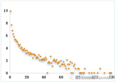 图18 跨域伪造流量来源路由器参与攻击天次呈现幂律分布